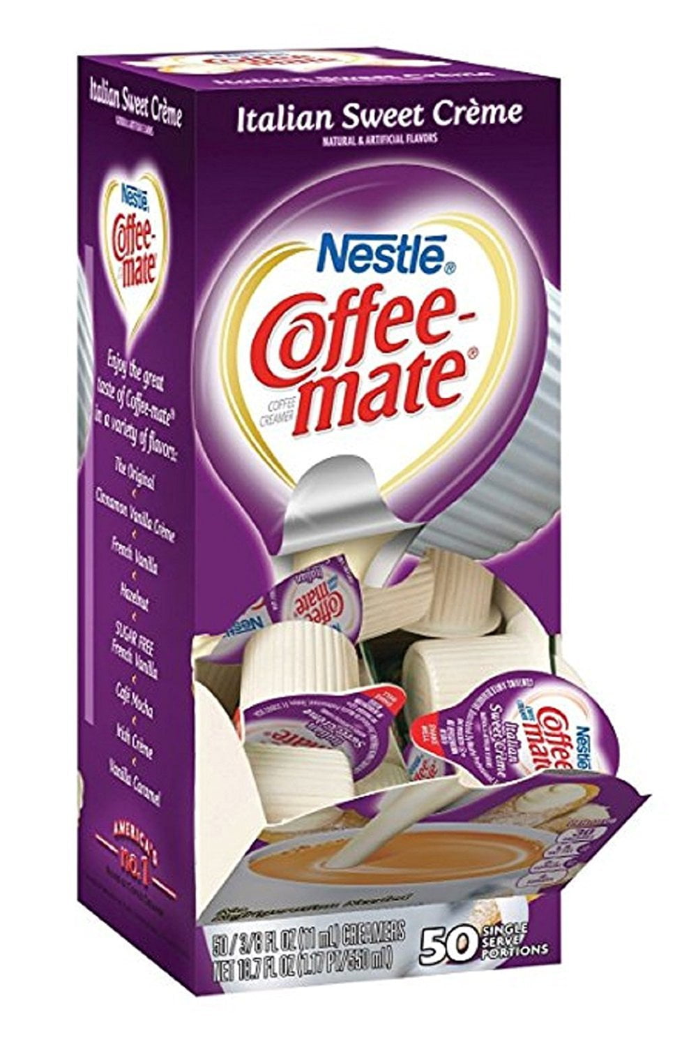 Calories in Nestle Coffee-Mate, Italian Sweet Creme - Fitbit Comprehensive nutrition resource for Nestle Coffee-Mate, Italian Sweet Creme. Learn about the number of calories and nutritional and diet information for Nestle Coffee-Mate, Italian Sweet Creme. This is part of our comprehensive database of 40,000 foods including foods from hundreds of popular restaurants and thousands of brands. Coffee-mate Nutrition Facts - Eat This Much Coffee-mate Carmel Macchiato - Nestle Find on Amazon Percent calories from... Quick stats 60 Calories 9g Carbs (9g net carbs) 2.5g Fat 0g Protein No price info Try our free Diet Generator I want to eat calories in meals. I like to eat Not the food you're looking for? Try these: Original Fat-Free Powder Coffee-mate - Coffee-Mate Gingerbread Powder The Original Coffee Creamer 32 oz | Official Coffee mate® Perfect your cup with our Coffee mate Original creamer that's triple churned and 2x richer than milk. This non-dairy coffee creamer is lactose-free, cholesterol-free, and gluten-free. Rich and smooth, this classic creamer creates a delicious velvety taste. Nutrition Non-Dairy Lactose-Free Cholesterol-Free Gluten-Free Also Available In Coffee Mate, Hazelnut Nutrition Facts - Eat This Much Coffee Mate, Hazelnut Nestle Find on Amazon Percent calories from... Quick stats 15 Calories 2g Carbs (2g net carbs) 1g Fat 0g Protein No price info Try our free Diet Generator I want to eat calories in meals. I like to eat Note: Any items purchased after clicking our Amazon buttons will give us a little referral bonus.