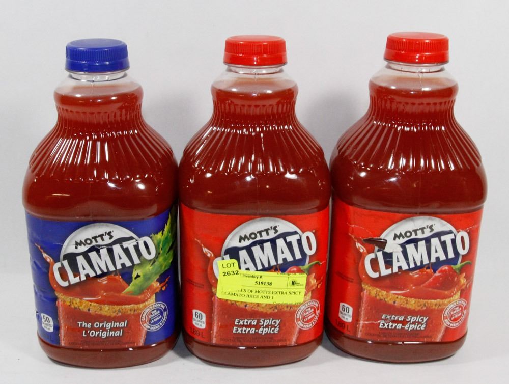 Amazon.com: motts clamato juice Mott's Clamato Juice, Extra Spicy, 1.89 Liters/2 Quarts 63.91 Fl Oz (Pack of 1) 3.8 out of 5 stars17 $24.99$24.99($0.39/Fl Oz) Get it Tue, Jan 25- Fri, Feb 4 FREE Shipping More Buying Choices$19.29(3 new offers) Mott's Clamato Juice - Original - 1.89L {Imported from Canada} 63.9 Fl Oz (Pack of 1) 4.6 out of 5 stars13