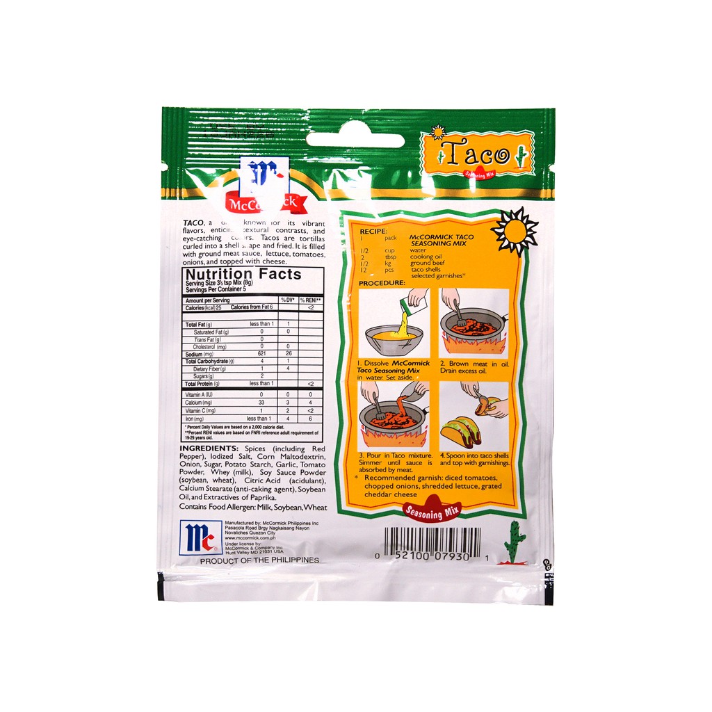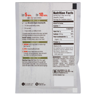 Old El Paso Taco Seasoning, Original, 1 oz. - Walmart.com Nutrition facts. Refer to the product label for full dietary information, which may be available as an alternative product image. ... When you stock your pantry with Old El Paso Original Taco Seasoning Mix packets, you're ready to celebrate taco night, every night. ... McCormick Taco Seasoning Mix - 30% Less Sodium, 1 oz. Add. $1.12. current ... McCormick Original Buffalo Wings Seasoning Mix - 1.6oz Read reviews and buy McCormick Original Buffalo Wings Seasoning Mix - 1.6oz at Target. Choose from Same Day Delivery, Drive Up or Order Pickup. ... Target does not represent or warrant that the nutrition, ingredient, allergen and other product information on our Web or Mobile sites are accurate or complete, since this information comes from the ...