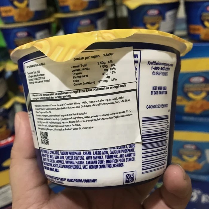 Mac and cheese food labels