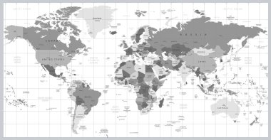 black and white labeled world map with the names of all the Aug 14, 2013 - A downloadable world b/w labeled map in .jpg format reserved for the Euratlas-Info subscribers only.