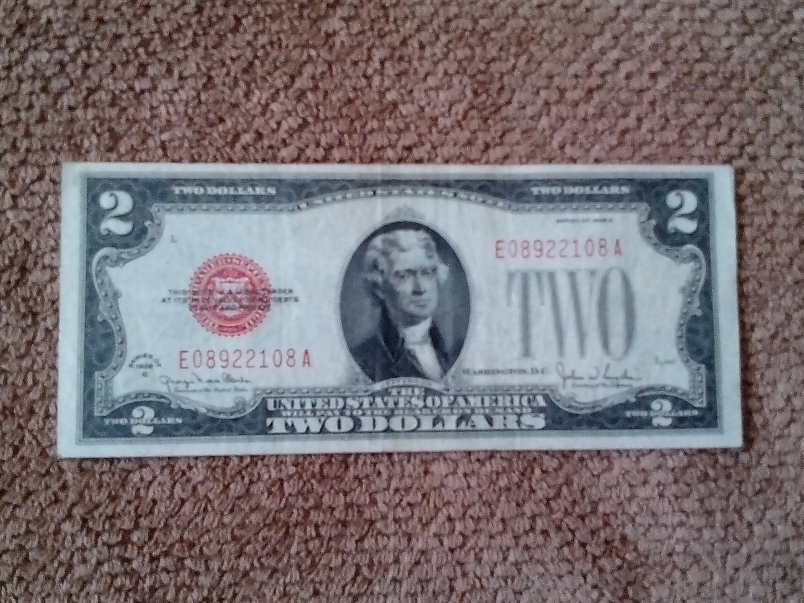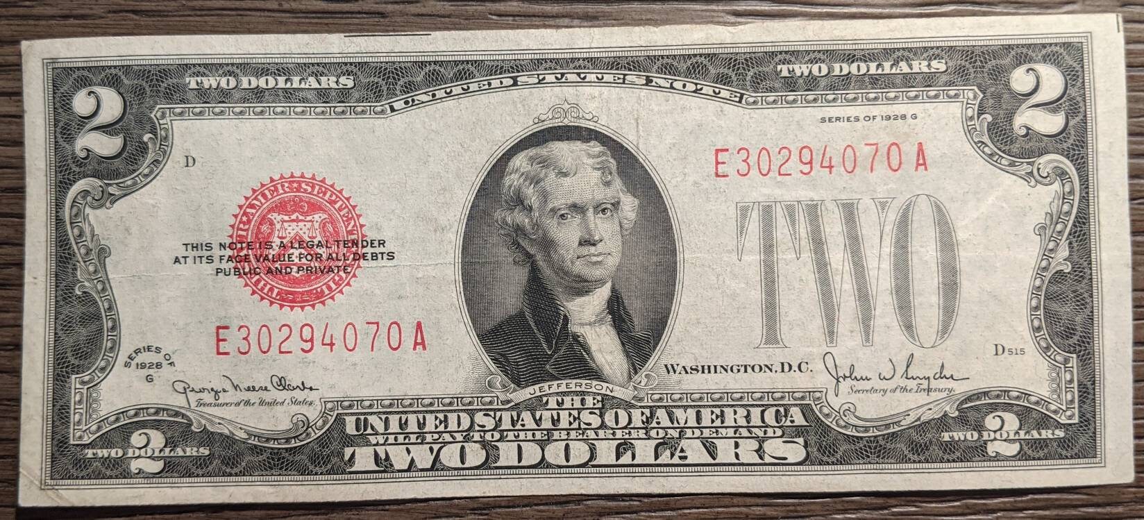 1928-G Red Seal Two Dollar $2 Bill Note E05106517A - Well Circulated! You are here. Coins & Paper Money; US Paper Money; US Small Size Paper Money Notes; United States Small Size Notes