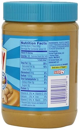 Skippy Peanut Butter Label - This Nutrition Medical Disclaimer: All content on this Web site, including medical opinion and any other health-related information, is for informational purposes only and should not be considered to be a specific diagnosis or treatment plan for any individual situation. Use of this site and the information contained herein does not create a doctor-patient relationship. Skippy Creamy Peanut Butter, 64 oz Nutrition Facts & Calories Skippy Creamy Peanut Butter, 64 oz LOG KEY FACTS (learn about health benefits or risks) Has high calorie density - this means that the amount of calories you are getting from an ounce is high (0.21 cal/oz). Rich in vitamins and minerals (7%/cal) - a good source of Magnesium, Phosphorus, Copper, Potassium, Zinc, Vitamin B6, Selenium and Iron. Home - Skippy® Brand Peanut Butter Grab and Go Protein Box with SKIPPY® Peanut Butter. SKIPPY® Peanut Butter Banana Roll-Ups. Peanut Butter Hummus 3 New Packages Add Value for Hormel's Skippy Peanut Butter ... Skippy Squeeze Creamy Peanut Butter and Skippy Squeeze Natural Creamy Peanut Butter Spread are packaged in a 6-oz, easy-to-squeeze pouch. In contrast, the new high-protein product is filled into squat 14-oz jars, and the no-sugar product is packaged in 16-oz jars. Separately, The J. M. Smucker Co. has announced the launch of Jif Squeeze Creamy ...
