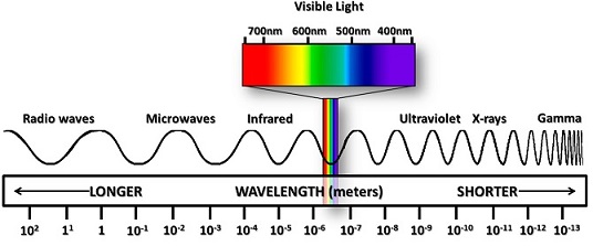 Electromagnetic Spectrum - Introduction - NASA Radio waves, gamma-rays, visible light, and all the other parts of the electromagnetic spectrum are electromagnetic radiation. Electromagnetic radiation can be described in terms of a stream of mass-less particles, called photons, each traveling in a wave-like pattern at the speed of light. Each photon contains a certain amount of energy.