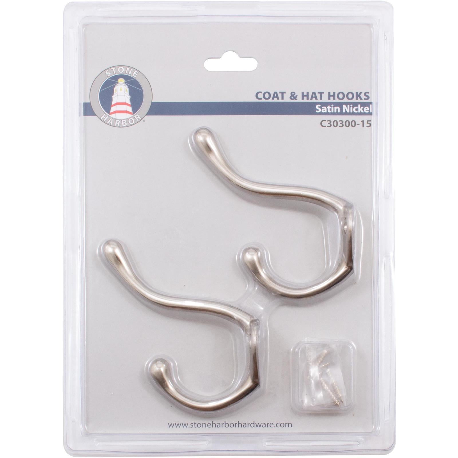 Coat & Hat Hook, 3-1/2" High, 2-1/4" Projection, 2-Pack ...