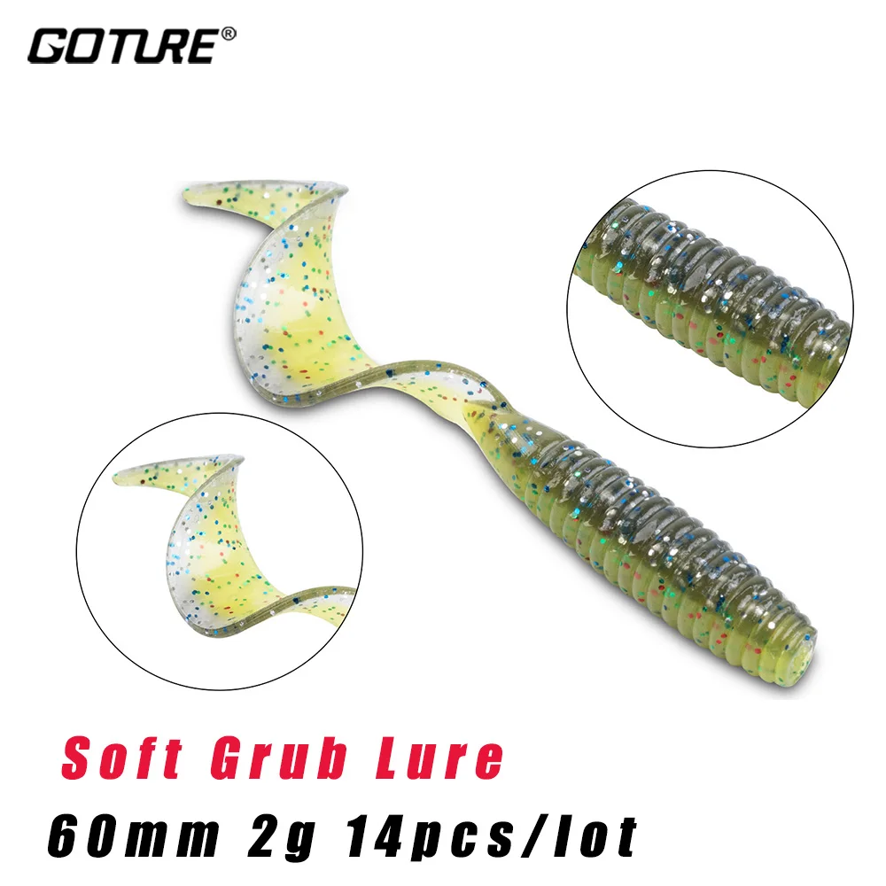 Goture 14pcs/lot Soft Grub Lure 60mm 2g Wormbait Soft Fishing Lure Professional Quality Silicone Soft Bait Wobblers for Carp