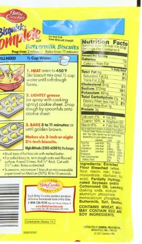 Bisquick nutrition label. Calories in Bisquick Heart Smart - Calorie, Fat, Carb ... - SparkPeople Other User Submitted Calorie Info Matching: Bisquick Heart Smart Bisquick Heart Smart Pizza Bake (1 serving) Calories: 200 , Fat: 10g , Carbs: 0g , Protein: 0g › recipes › bisquick_appleBisquick Apple Coffee Cake - Simply Recipes May 28, 2022 · 2 cups baking mix, such as Bisquick. 2/3 cup milk or water. 2 tablespoons sugar. 1 large egg. 1 tart green apple, cored, peeled, sliced. Topping: 1/3 cup baking mix, such as Bisquick. 1/3 cup packed brown sugar. 1/2 teaspoon ground cinnamon. 4 tablespoons butter, thinly sliced Bisquick - Brands - Food we make - General Mills Fun facts about Bisquick 25 1/2 feet The diameter of the World's Largest Peach Shortcake made in 1981, containing more than four tons of Bisquick and nine tons of peaches. 1930 The year that started it all. 50+ Years that Bisquick has gained a legacy with its yellow and blue box, used to make all kinds of delicious meals and snacks. History Calories in Bisquick Biscuit and Nutrition Facts - FatSecret Nutrition Facts Serving Size 1 biscuit (40 g) Amount Per Serving Calories 130 % Daily Values* Total Fat 2.00g 3% Saturated Fat 0.000g 0% Trans Fat 0.000g Cholesterol 0mg 0% Sodium 230mg 10% Total Carbohydrate 27.00g 10% Dietary Fiber - Sugars 3.00g Protein 3.00g Vitamin D - Calcium - Iron - Potassium -