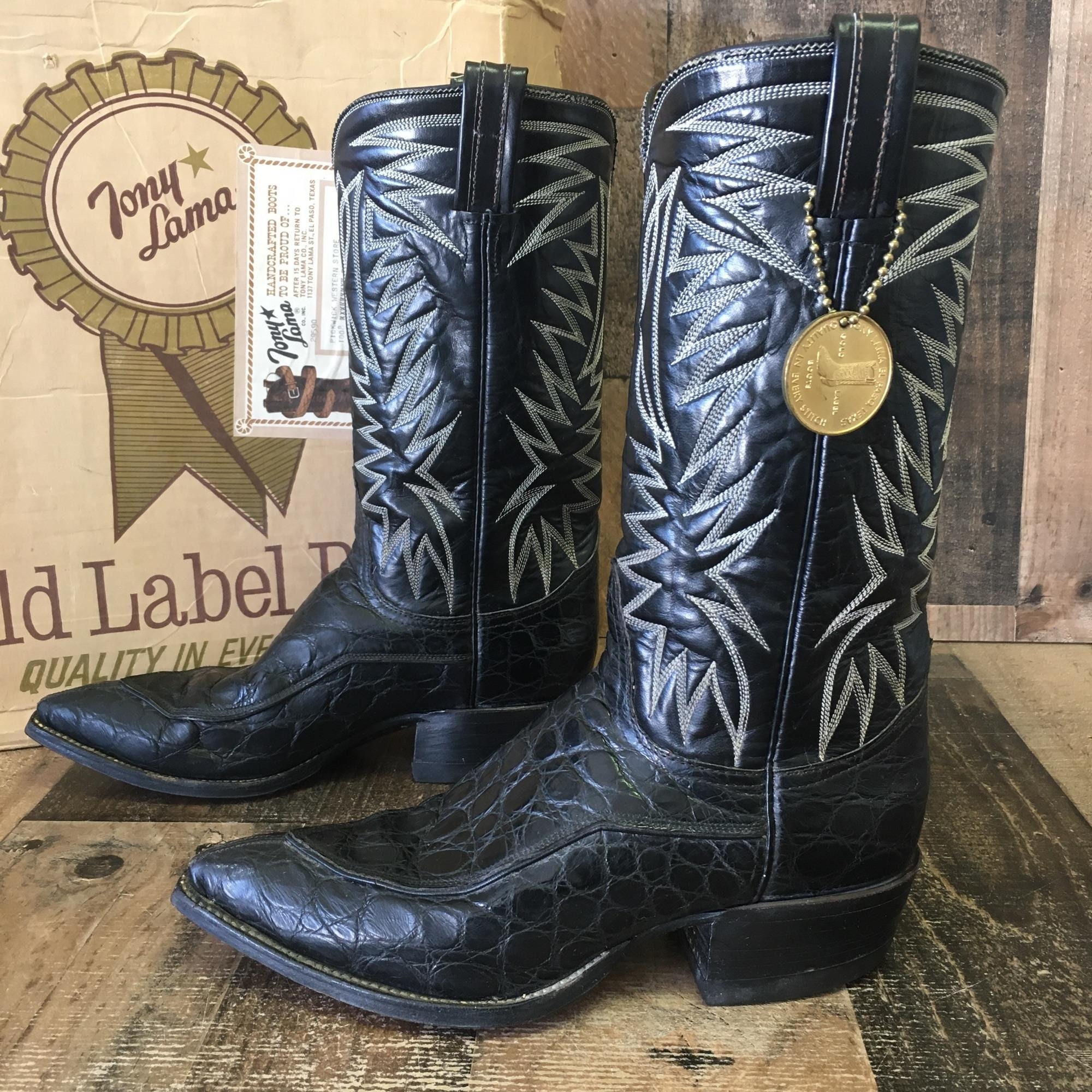 Vintage Men's Tony Lama for sale | eBay Vintage Tony Lama Men's Black Label #8267 Leather Rodeo Cowboy Western Boots 11. $250.74. Was: $294.99. Free shipping. or Best Offer. SPONSORED. Vintage Tony Lama Mens 8056 Black Label Blue Leather Cowboy Western Boots Size 7. $191.25. Was: $225.00. Free shipping. or Best Offer. SPONSORED.