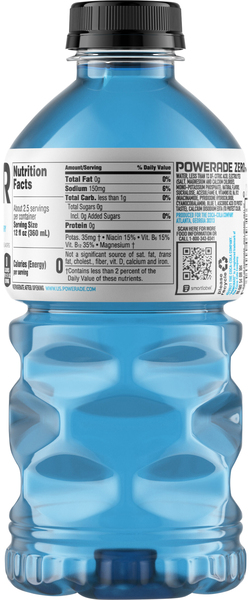 Powerade Zero Mixed Berry Sports Drink - H-E-B Calories from Fat, 0 ; Added Sugars 0g, 0% ; Sugar Free 0 ; Kosher 0 ; Niacin 0, 15%.