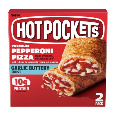 Hot Pockets Sandwiches, Premium Pepperoni, Pizza, Garlic Buttery ... Reserve Pickup Timeat Price Chopper #001 ; Description. Premium pepperoni made with pork, chicken & beef pizza with reduced fat mozzarella cheese in a seasoned ...