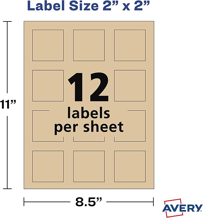 Avery Print-to-the-Edge Laser/Inkjet Specialty Labels, 2" x 2", Kraft ... Avery (R) Printable Blank Square Labels, 2" x 2", Kraft Brown, 300 Customizable Labels (22846) Bring Your Business to Life Easily brand your business with Avery customizable labels and tags that you can design and print from your personal printer.