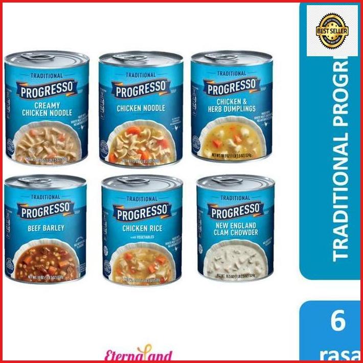 Progresso Soups - Walmart.com Progresso Ready-to-Serve Traditional Chicken Noodle Soup, New, 8 Pk. 1. $20.46. Progresso Traditional Soup, Chicken Rice with Vegetables. $40.47. Progresso Rich & Hearty, New England Clam Chowder Soup, Gluten Free, 18.5 oz. (Pack of 12) $6.99. Progresso Soup, Cheese Tortellini, Traditional, 18.5 oz Can, Quantity of 1. $11.00.