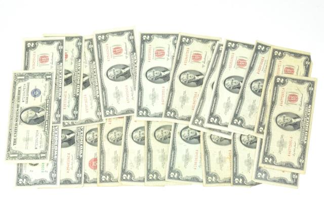 1953 2 Dollar Bill | Learn the Value of This Bill The 1953 two dollar red seal is a bill that looks more valuable then it actually is. The majority of these bills aren't very valuable but they are a part of America's history and they can make great gifts. If you're interested in valuable two dollar bills then check out the rare varieties of the 1928 two dollar bill and the 1976 two dollar bill. 1953 Red Seal Two Dollar Bill – Values and Pricing All the different 1953 red seal two dollar bills are equally common. In average condition any 1953 red print $2 should sell for about $2.50 to a dealer or collector. If you have a run of 100 consecutive red writing two dollar bills, expect about $8 per note. The same $8 applies to smaller runs of consecutive notes. 1953 2 Dollar Bill Value Chart (Worth Up to $12,925) Nov 3, 2022 · The 1953 $2 bills feature a portrait of Thomas Jefferson on the obverse side, and his residence Monticello on the reverse side. These bills were printed only in Washington DC and circulated across the country. All 1953 $2 bills have red seals and red overprints. In total there were 79,920,000 notes printed.